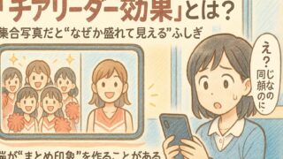 集合写真で同じ人が一人より魅力的に見えるのはなぜ?『チアリーダー効果』を結論からやさしく解説。研究で分かったことと、原因がまだ研究中である点を整理し、推し活・SNSでの安全な活かし方まで紹介(FAQ付き)。