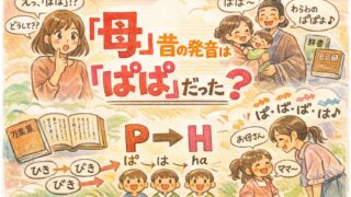 母(はは)は昔「ぱぱ」だった?20秒で結論:意味ではなく発音史。ハ行の変化を根拠つきで整理し、『は=わ』『いっぴき』の謎や万葉集・お母さん普及まで一気につなげます。