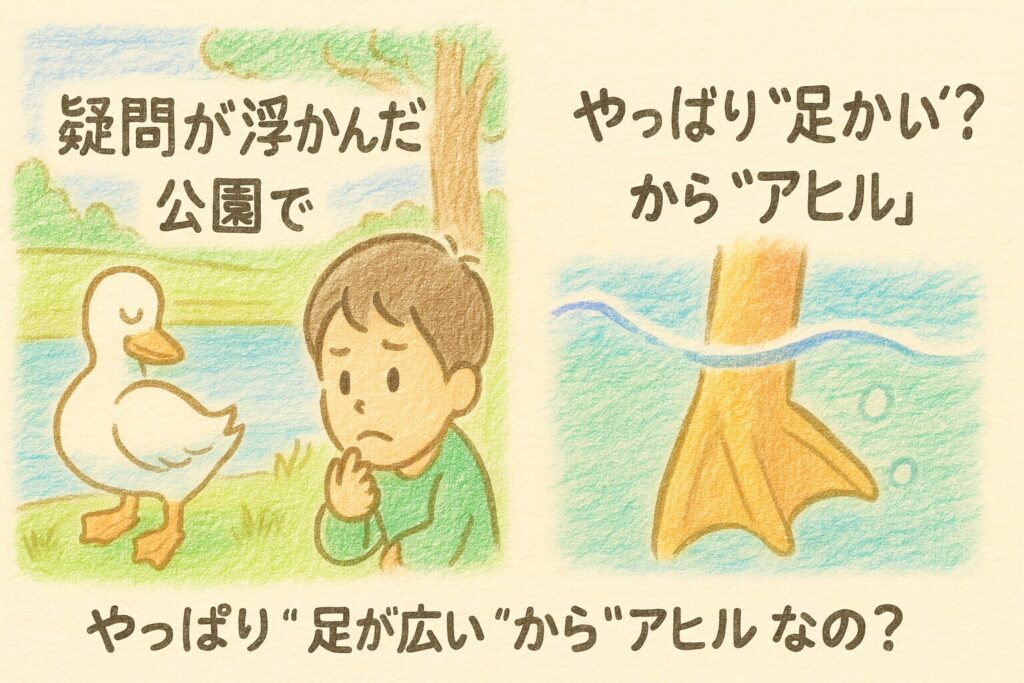 “アヒル”の語源は“足が広い”から?——由来・意味をサクッと解説【すぐ答え→深掘り】