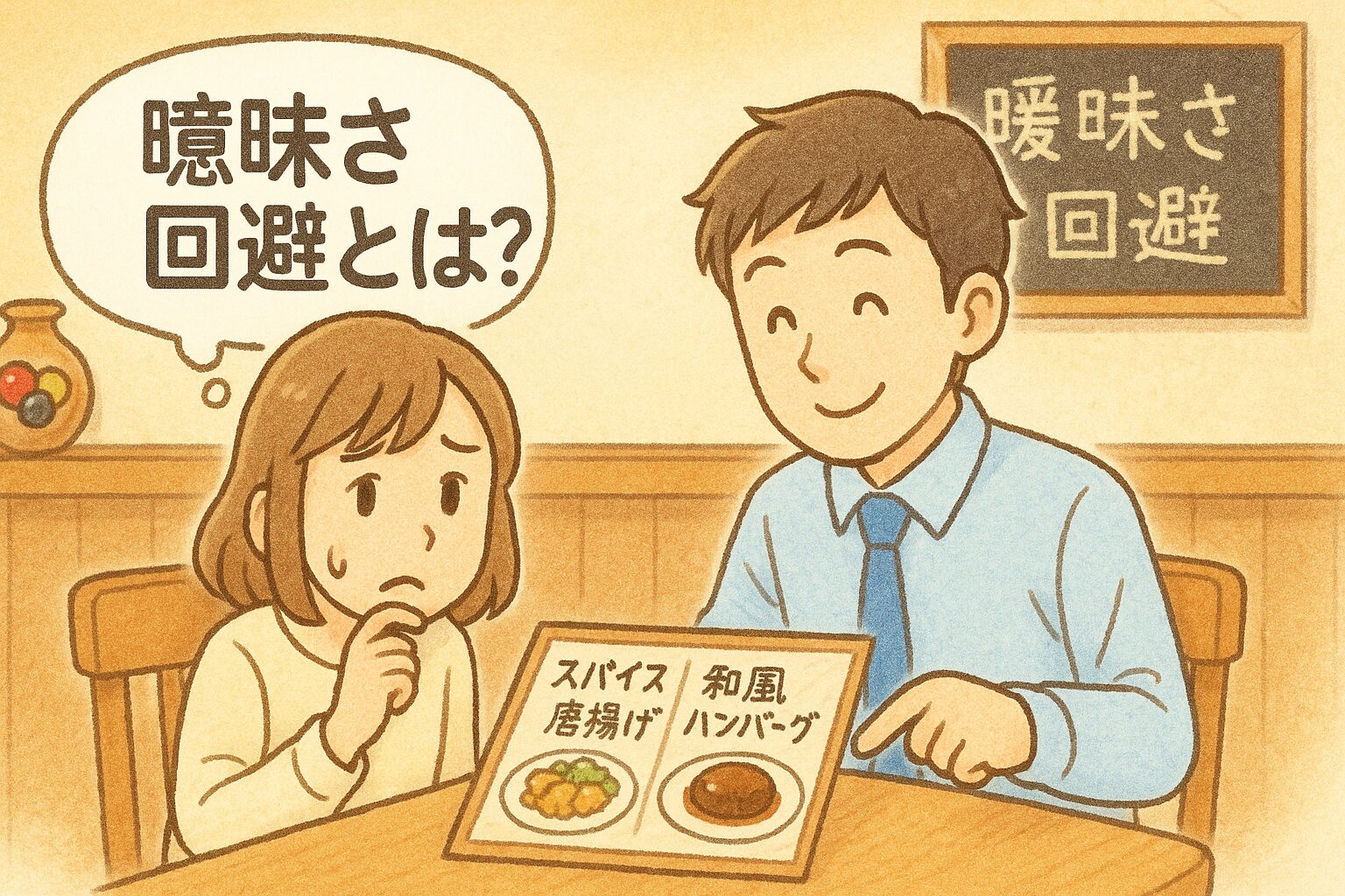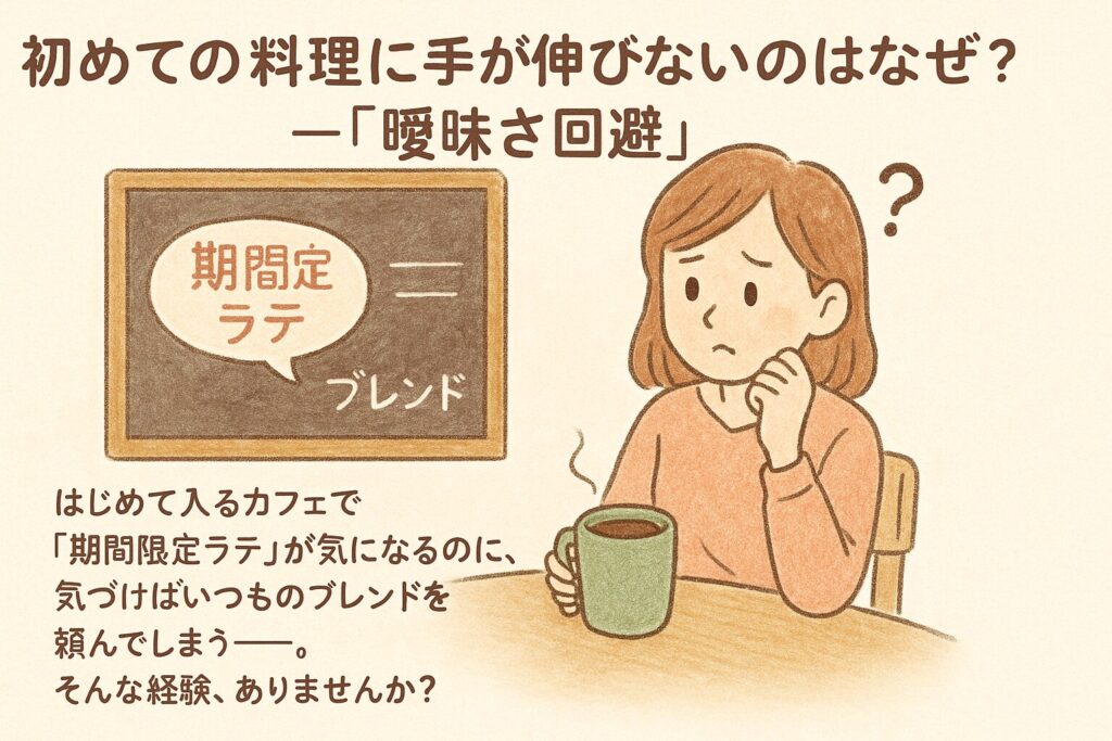 『曖昧さ回避』とは、新メニューや新商品を前に“気になるのに結局いつものを選んでしまう”ような、不確実さを避けて安心を選ぶ人間の心理傾向です。