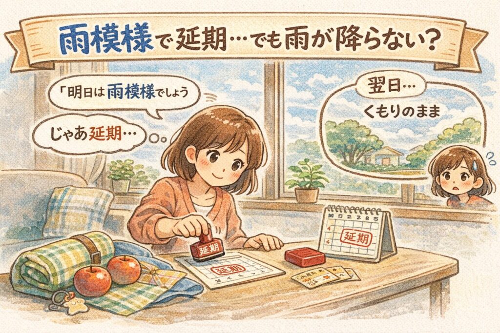 - 「雨模様なので延期します」と連絡が来る → 人によって“延期の判断”が変わって揉める