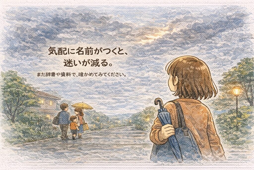 言葉の意味は、ときに――雨模様の空のように、遠くで静かに“きざし”を見せます。