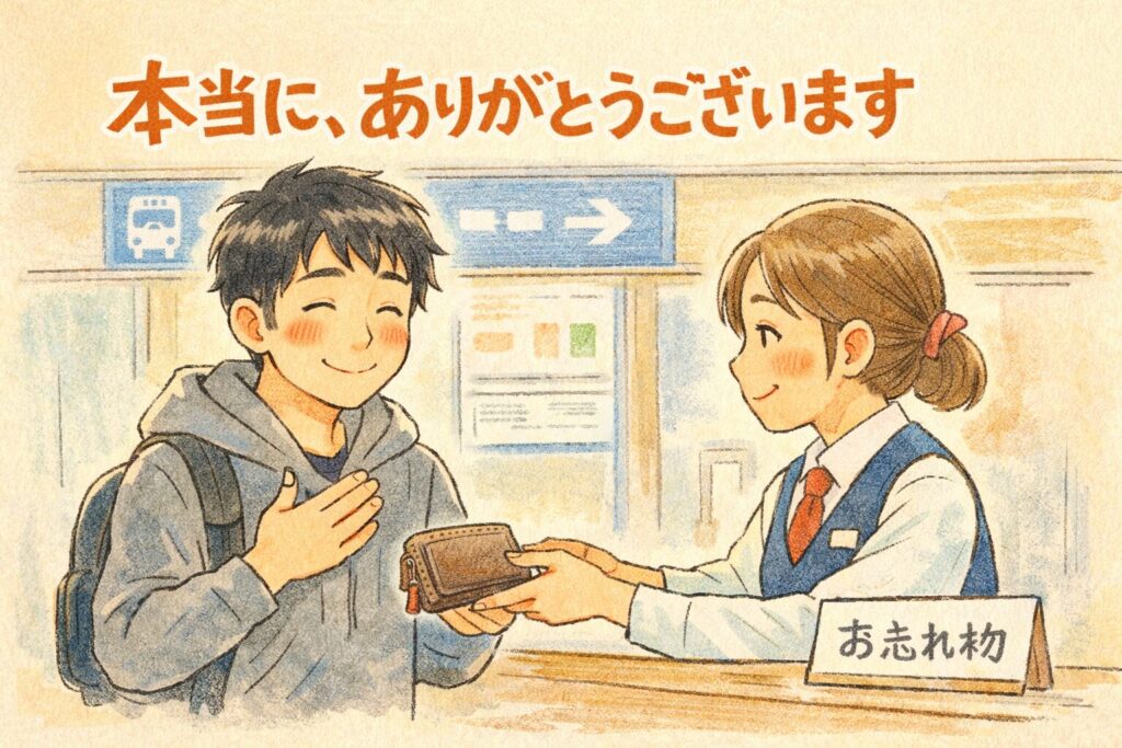 落とし物を駅で受け取ったとき、思わず言いますよね。