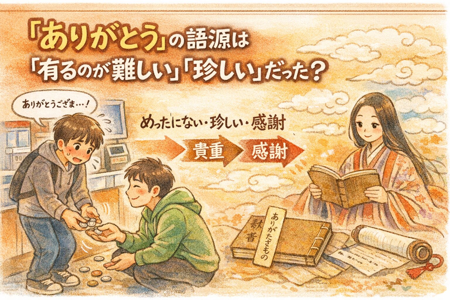 「ねえ知ってる? “ありがとう”って、昔は“めずらしい”って意味だったらしいよ」