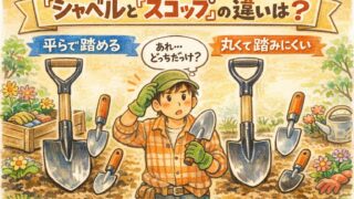 シャベルとスコップ、どっちがどっち?JIS基準の目安(平らで踏める=シャベル/丸い=スコップ)と、関東関西で呼び方が逆になる理由を整理。語源、通販で迷わない選び方、会話で通じる言い方テンプレまで1記事で解決します。