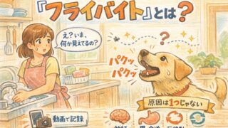 犬がハエもいないのに空中をパクパク噛む…それはフライバイトかも。神経・胃/食道・行動の原因候補、似た行動との違い、動画の撮り方と受診目安をチェックリスト付きで解説。病院で伝えるテンプレも掲載。