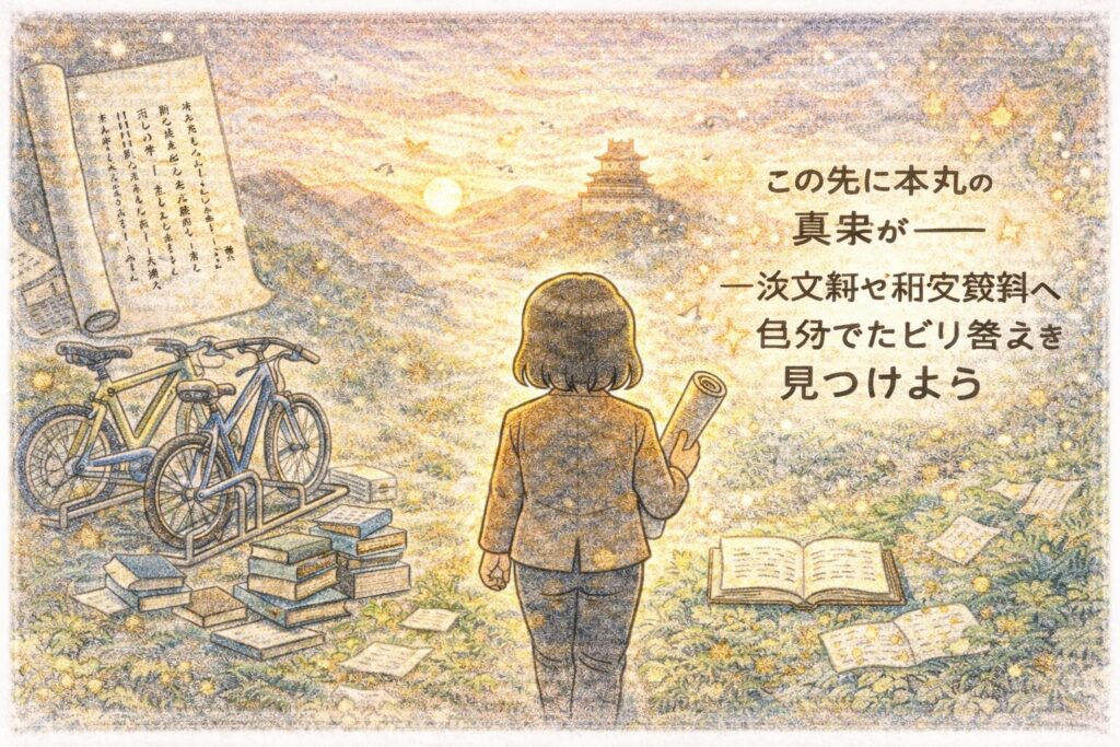 この先もし気になったら、“自転車置き場の色”の先にある本丸へ――ぜひ一次文献や研究資料までたどって、あなた自身の答えを描いてみてください。