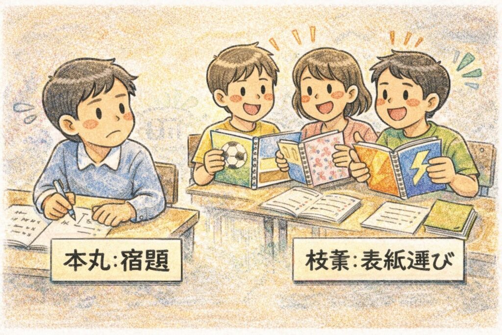 「大事な宿題を後回しにして、ノートの表紙選びに時間を使う」みたいなことです。