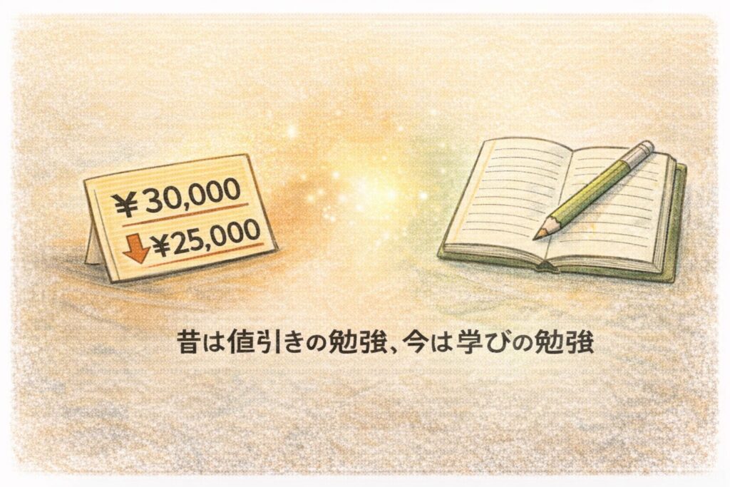 それでは、昔は“値引きの勉強”、今は“学びの勉強”を、あなたの毎日に気持ちよく活かしていきましょう。