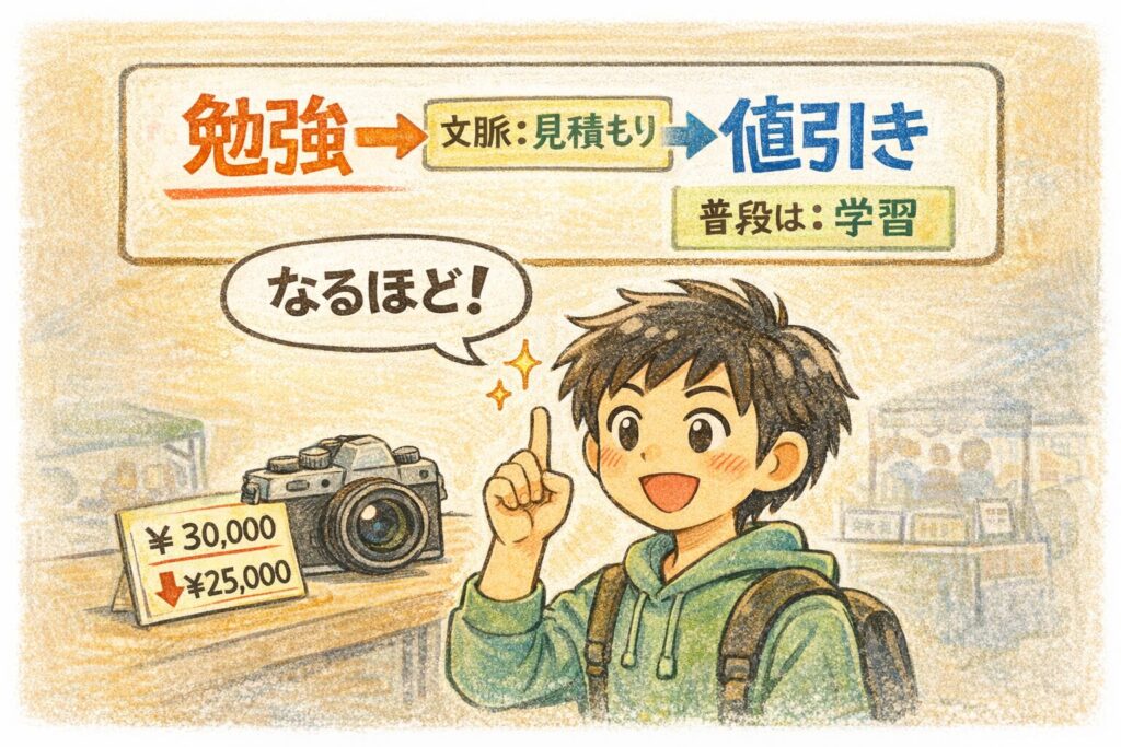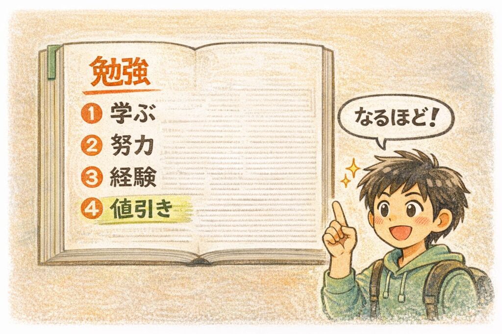 “学習”ではなく、“値引き寄りの勉強”として読むと自然です。
