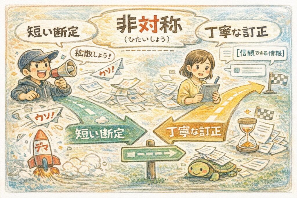 “誤情報を出すコスト”と“誤情報を正すコスト”が非対称