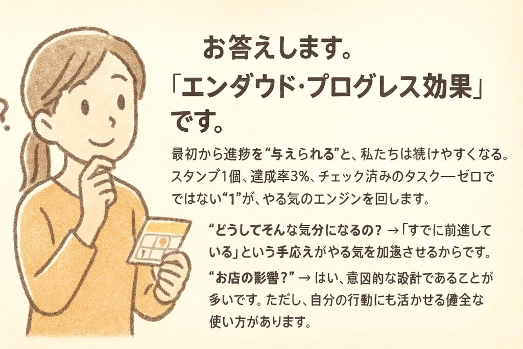 ポイントカード、最初から押されてるのはナゼ?——それは『エンダウド・プログレス効果』かもしれません。