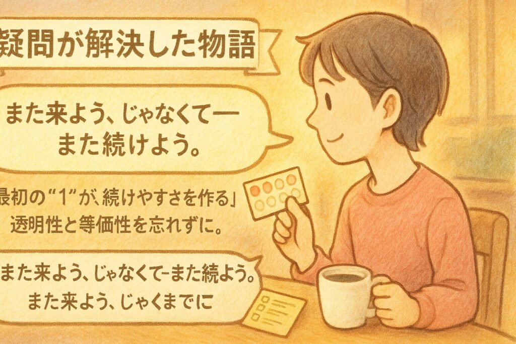 - 注意:等価性・透明性・やめやすさを守り、**数値の“盛り”**はしない。
