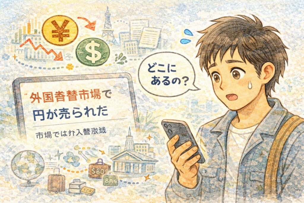 ニュースでよく聞く『外国為替市場』とは何かを、どこにあるのかという基本から、参加者、仕組み、為替介入とのつながりまで初心者向けにやさしく整理しました。