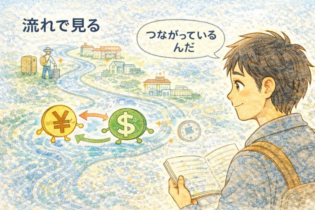 円高や円安のニュースも、ただ数字が上下しているだけではなく、世界の中でお金が行き交い、人や企業や国がそれぞれの立場で動いている結果なのだと感じられるようになります。