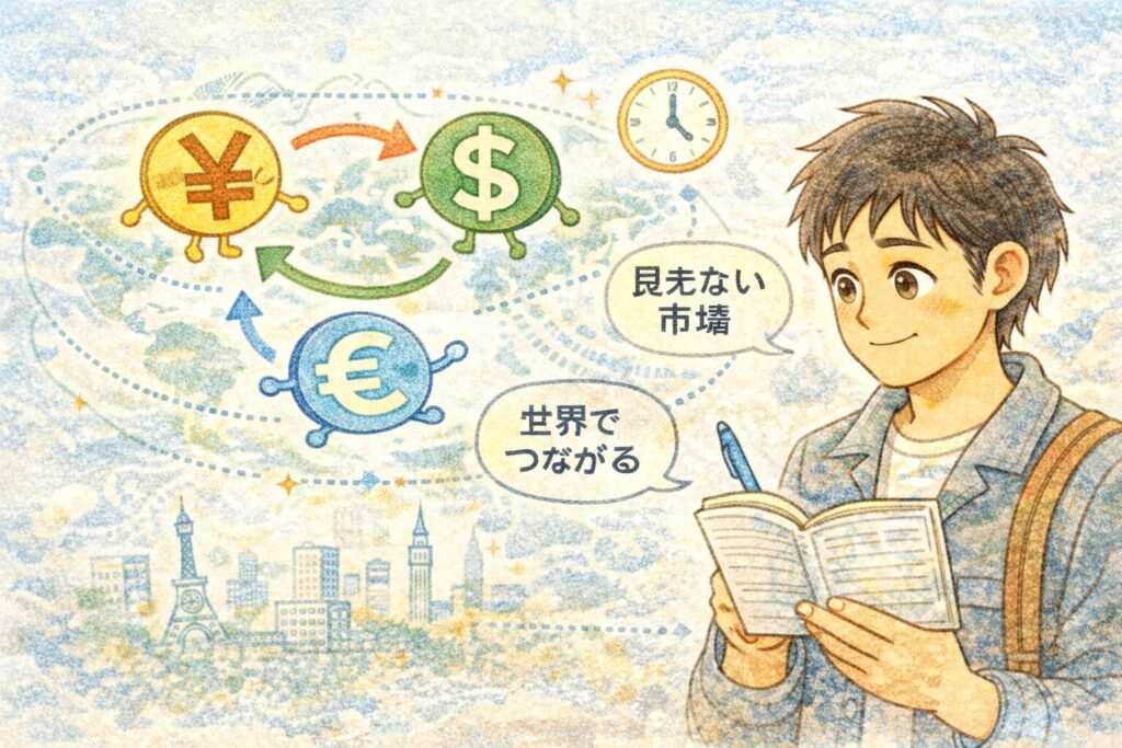 **世界中のお金が出会って交換される、大きな“見えない市場”**です。