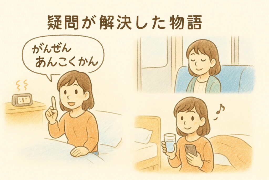 枕元の水をひと口。スマホのメモに**“いつ・どこで・何をしていたか”**を記録します。