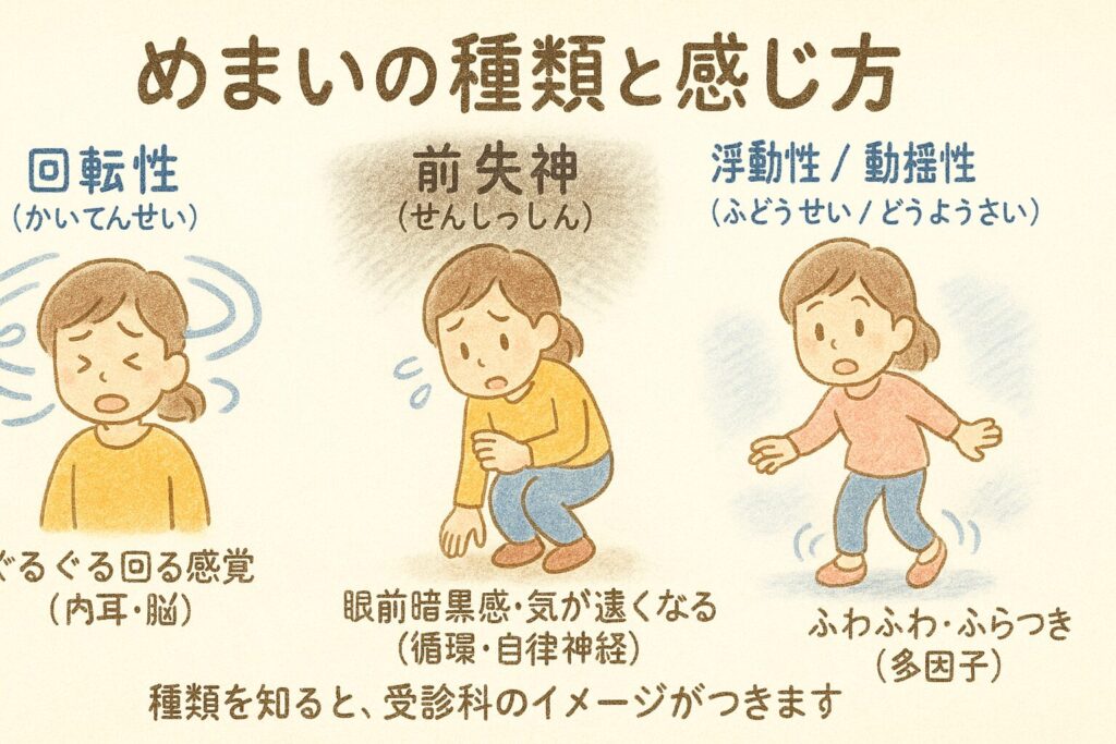 • 眼前暗黒感=「視界が急に暗くなる」タイプのめまいの前ぶれ(前駆〈ぜんく〉症状)。失神(しっしん)の手前に出ることがあります。臨床では“症状名(記述語)”として使われ、特定の病名ではありません