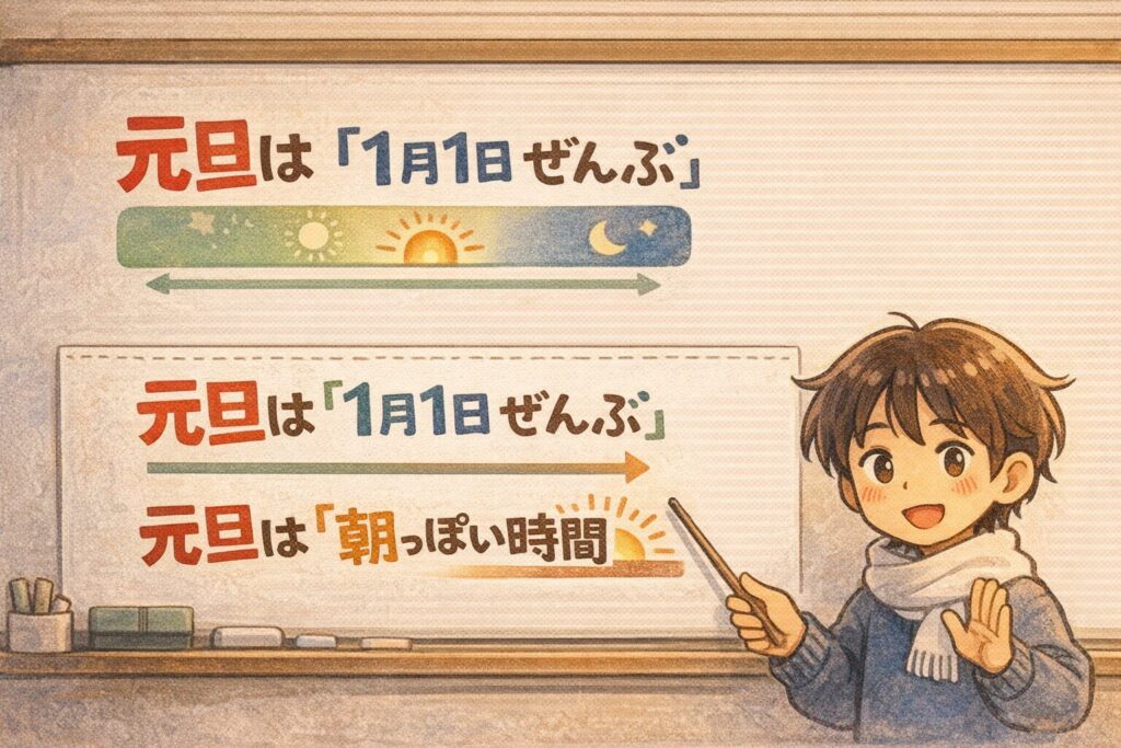 「元旦って朝なの?」「元日は一日全部?」みたいな疑問を、