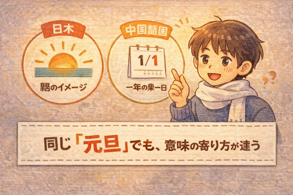 「元日/元旦」が“日と朝”でズレるのと、構造が似ています。