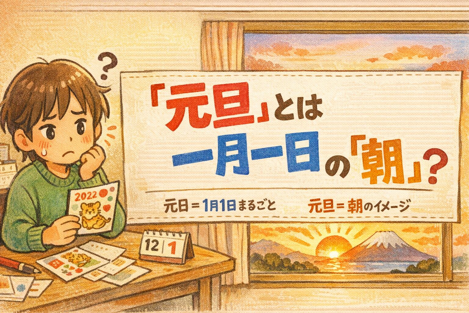 「元旦って朝なの?」「元日は一日全部?」みたいな疑問を、