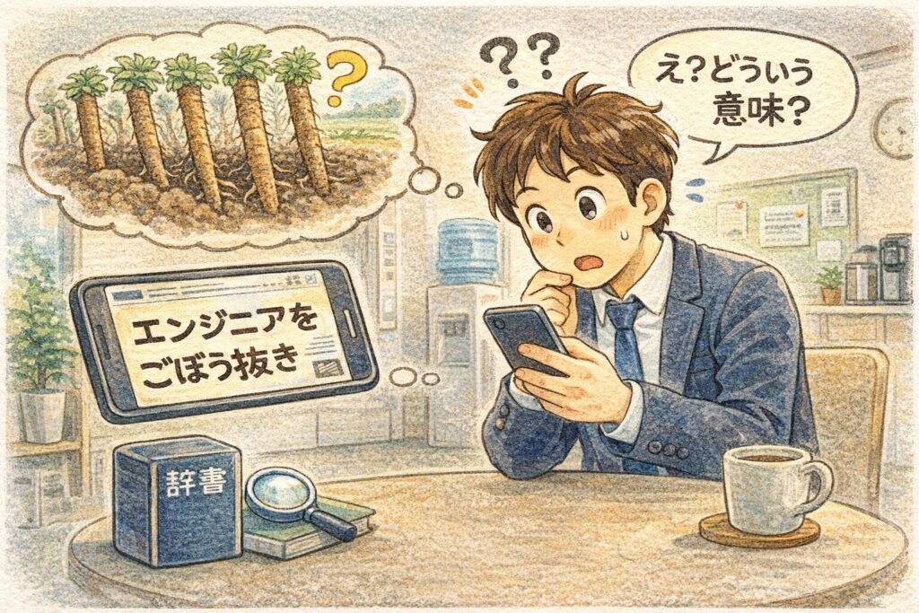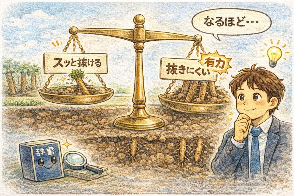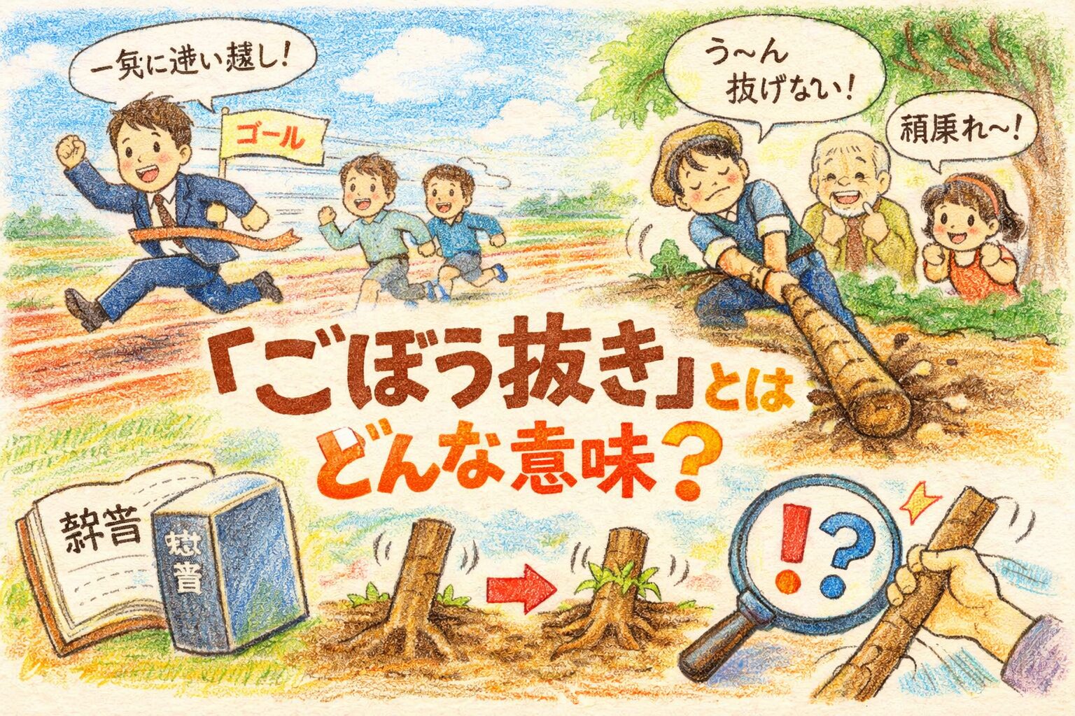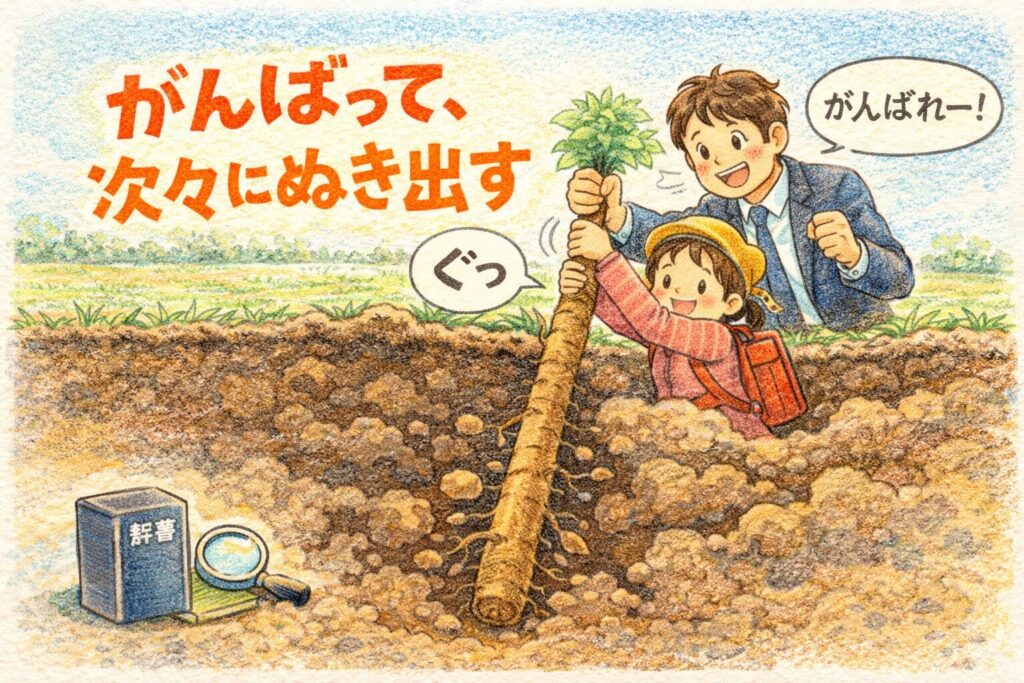 次に「ごぼう抜き」を見聞きしたとき、あなたの頭の中では“意味”だけでなく“手触り”まで一緒に立ち上がる。