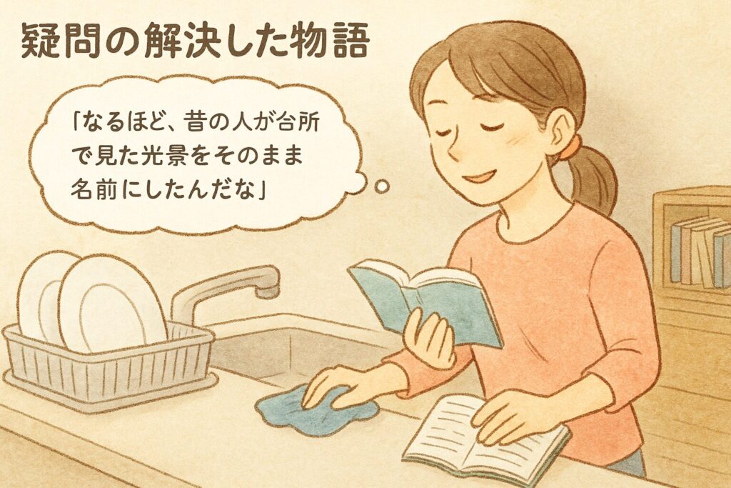 「なるほど、昔の人が台所で見た光景をそのまま名前にしたんだな」
