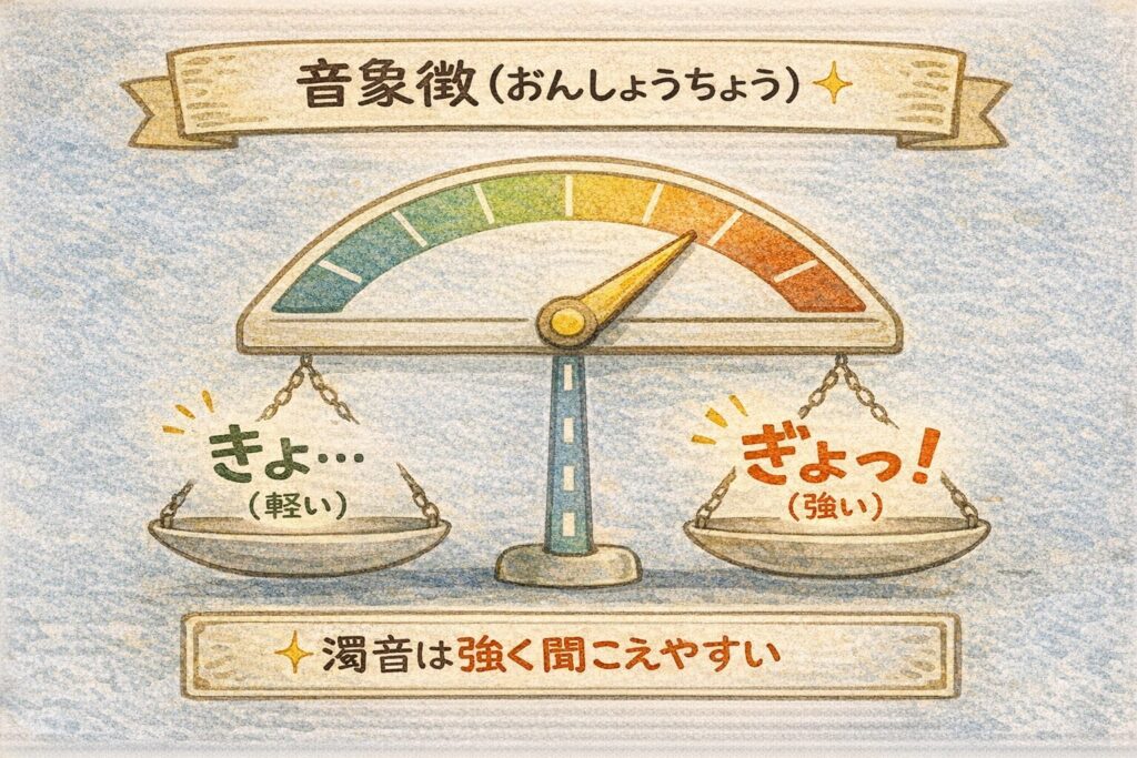 その「ドキッの感じ」を、日本語は “ぎょっ” という音にした……というイメージです。