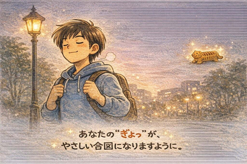 あなたの毎日の「ぎょっ」が、敔(ぎょ)のように――大切なところで立ち止まれる、やさしい合図になりますように。