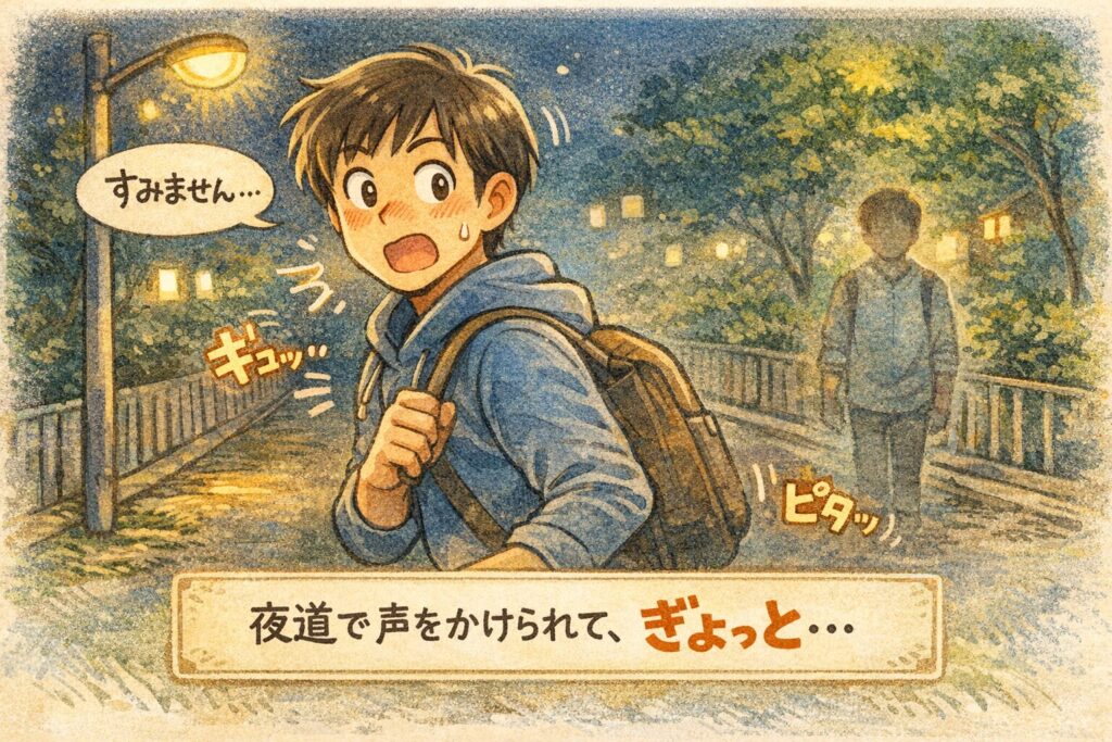 夜道で、背後から急に「すみません」と声をかけられて、ぎょっとした。