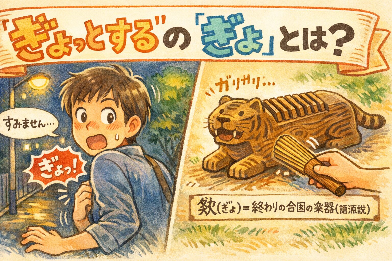 『ぎょっとする』の『ぎょ』は楽器の名前?虎の形の正体をやさしく解説