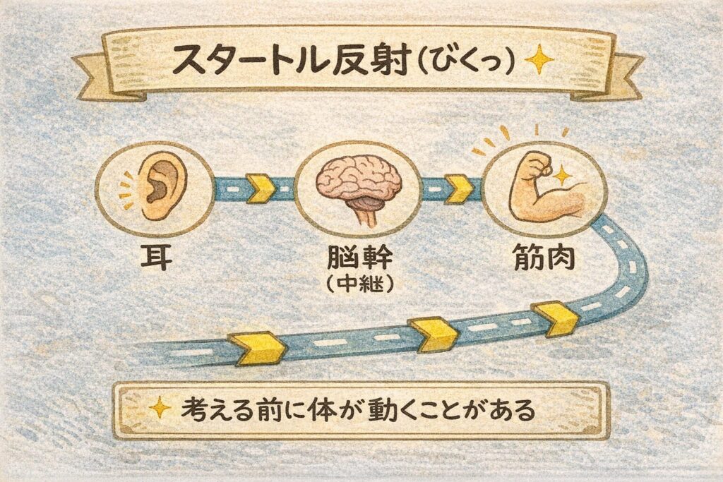- そもそも人は、なぜ“ぎょっ”となるの?(スタートル反射=突然の刺激でビクッとなる体の反応)