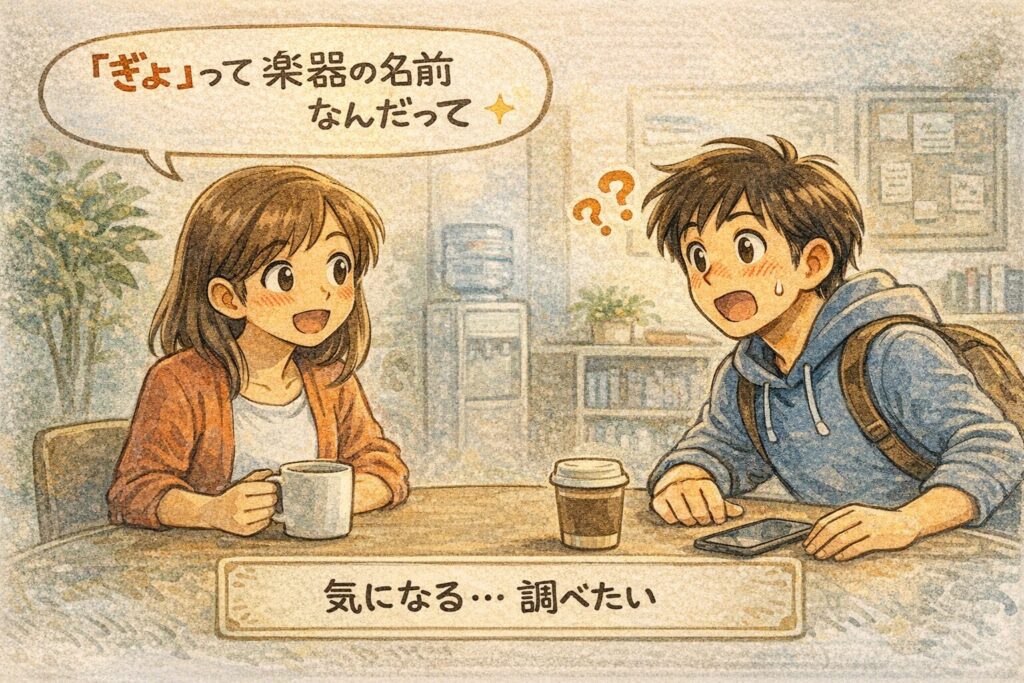 「ねえ、“ぎょっとする”の“ぎょ”って、楽器の名前なんだって」