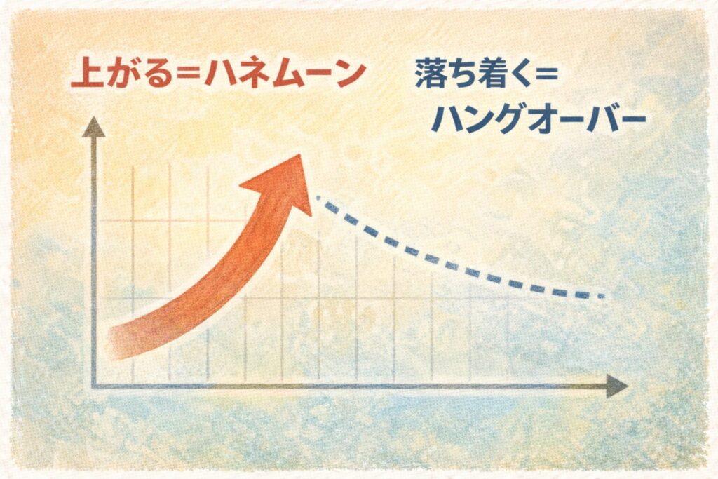 (→次は、付属として「似た言葉:ハネムーン・ハングオーバー効果」も整理します)