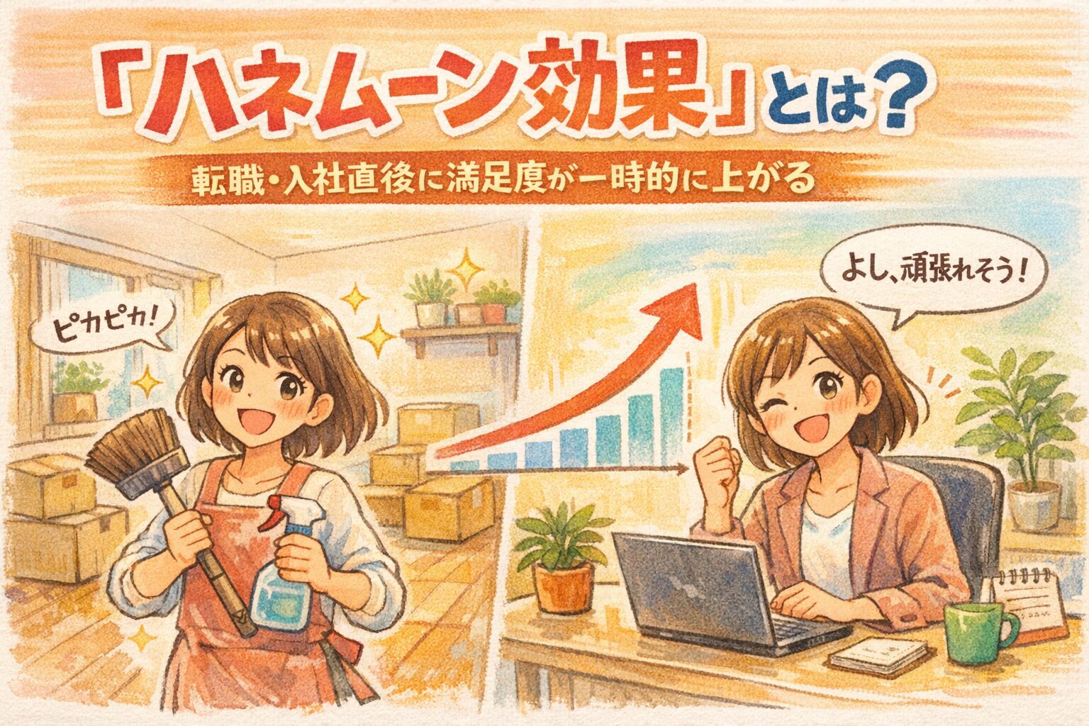 「ハネムーン効果とは、入社・転職直後などに職務満足度が一時的に高まる局面のこと」