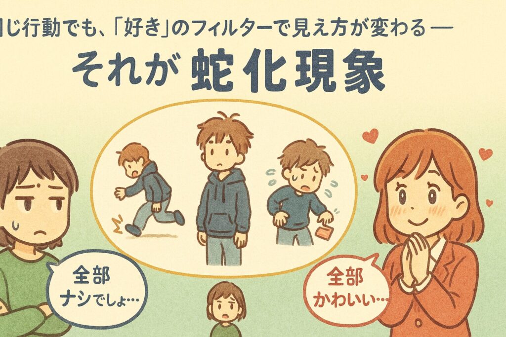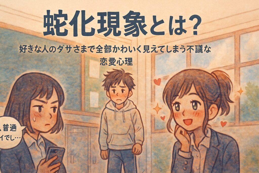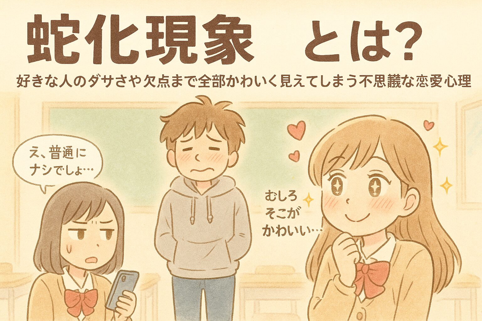 『蛇化現象』とは?好きな人のダサいところや欠点まで「全部かわいい」と感じてしまう不思議な心理の意味を、蛙化現象との違いもふくめてやさしく解説します。