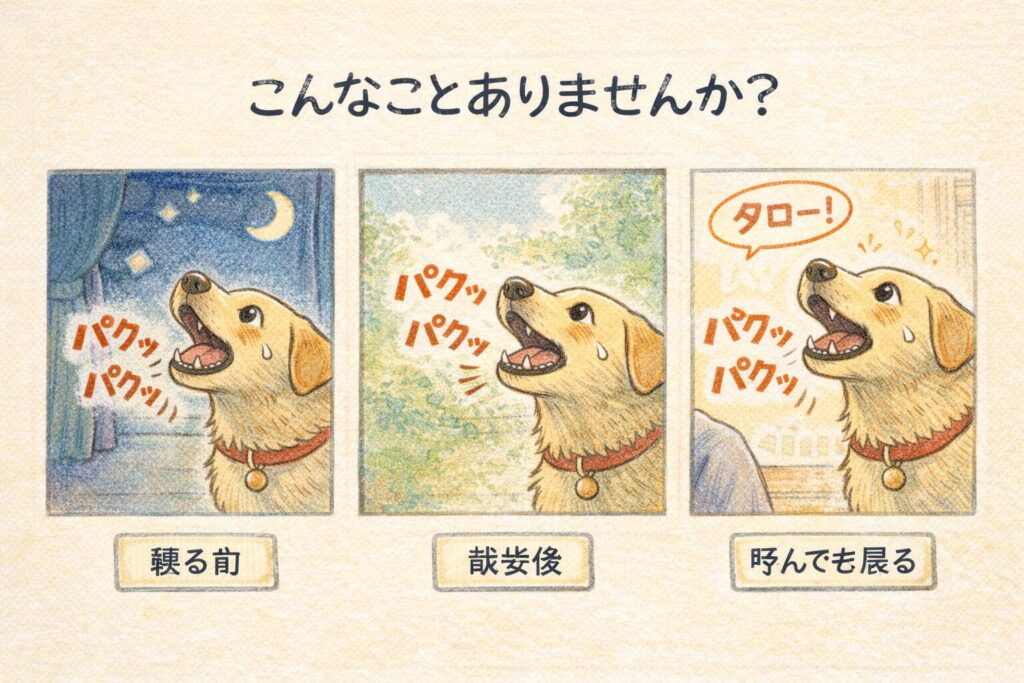これを見た飼い主さんが「どうして?」と思うのは、だいたい次のような場面です。