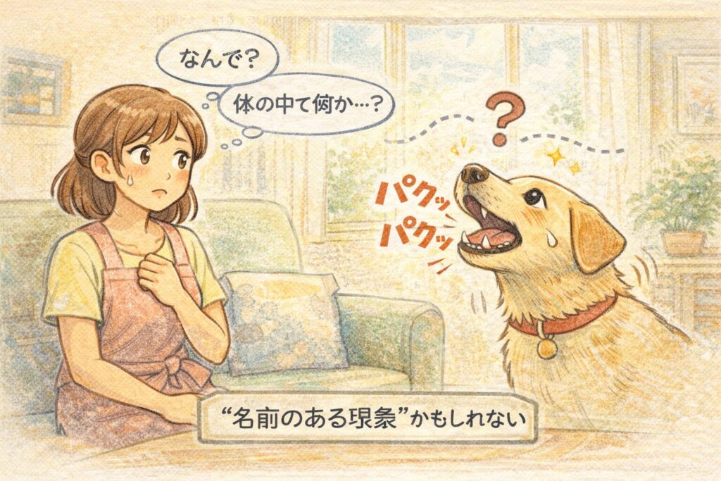 犬が 見えないハエを噛むように空中で口をパクパクする行動 を指し、原因はひとつに限られず、焦点発作(しょうてんほっさ/フォーカル・シージャー) などの神経の問題、胃や食道の不調(例:胃食道逆流)、反復行動(強迫的な行動)などが関係することがあります。