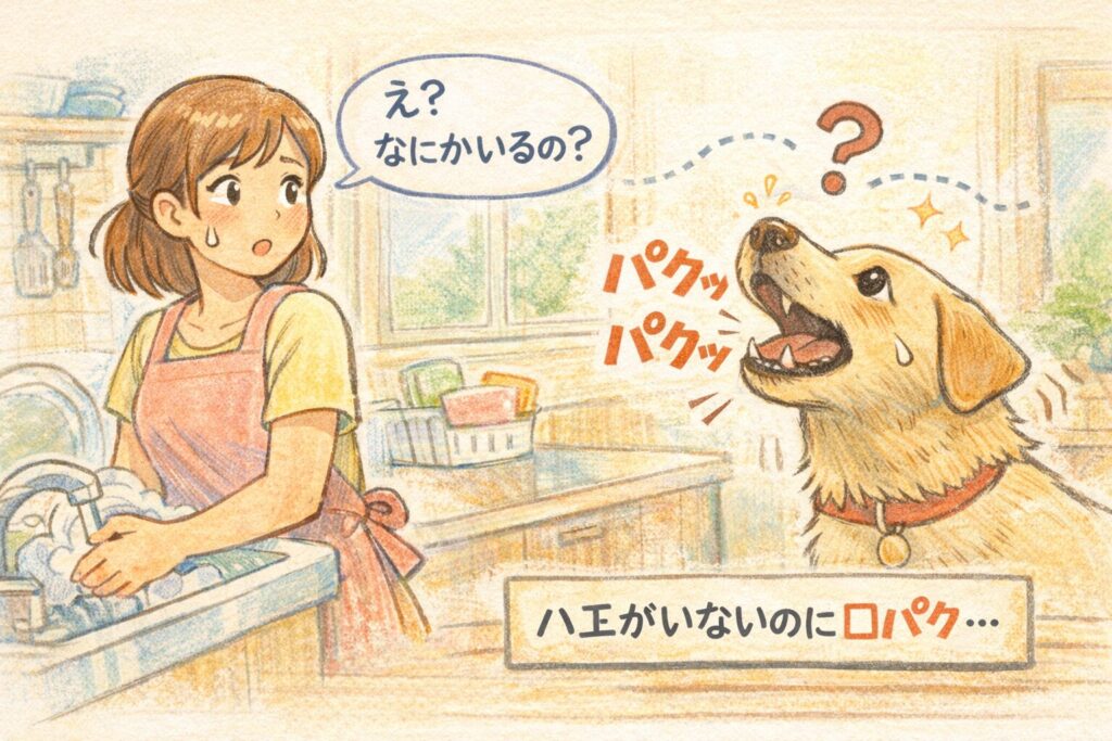 愛犬がふいに顔を上げ、空中に向かって「パク、パク、パク」。