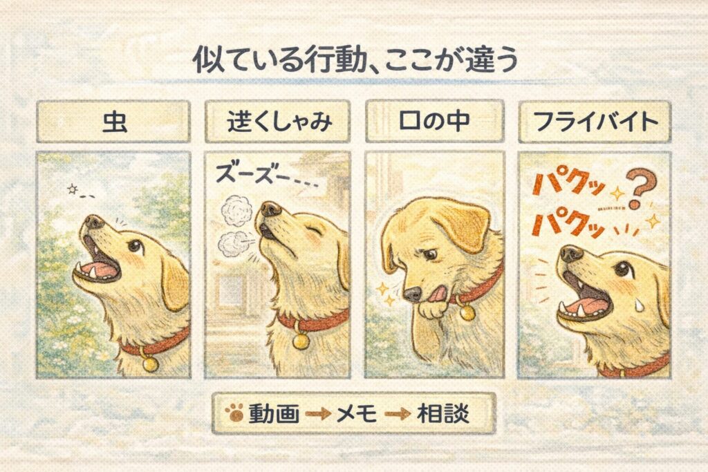フライバイトは、見た目は“空振りのパクパク”でも、背景は神経や消化器、行動まで広がる奥深いテーマです。