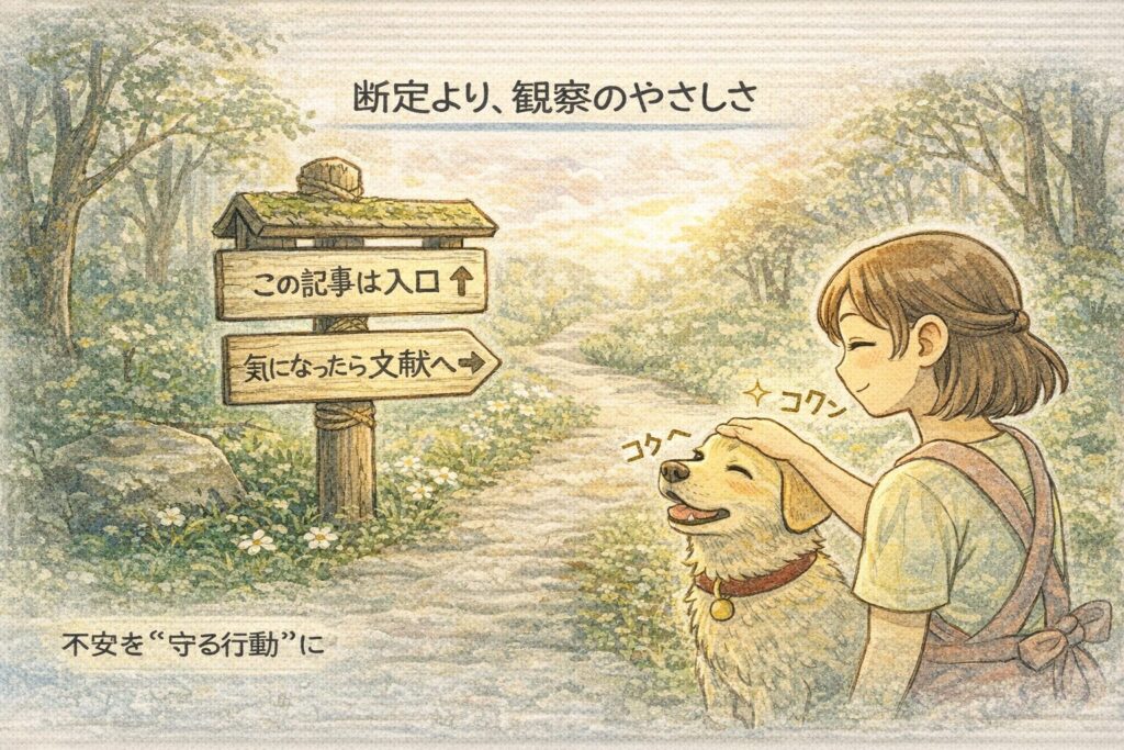 だからこそ、信頼できる文献や資料を辿るほど、あなたの観察は精度を増し、愛犬のサインをもっとやさしく読み取れるようになります。