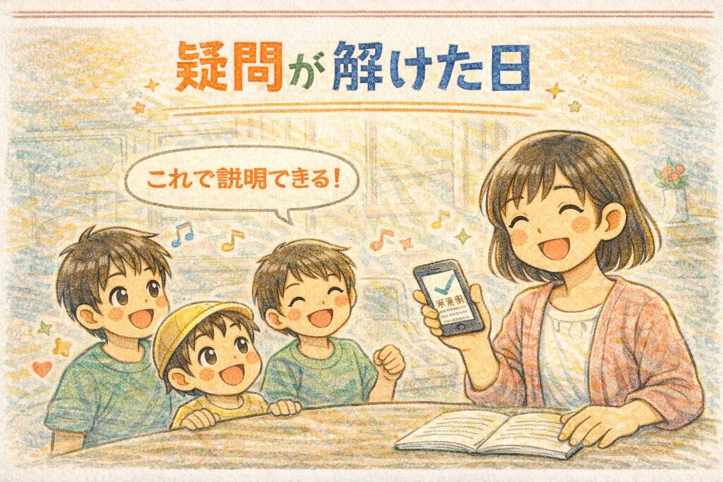 - 親戚や子どもの質問に、短く・やさしく答えられる