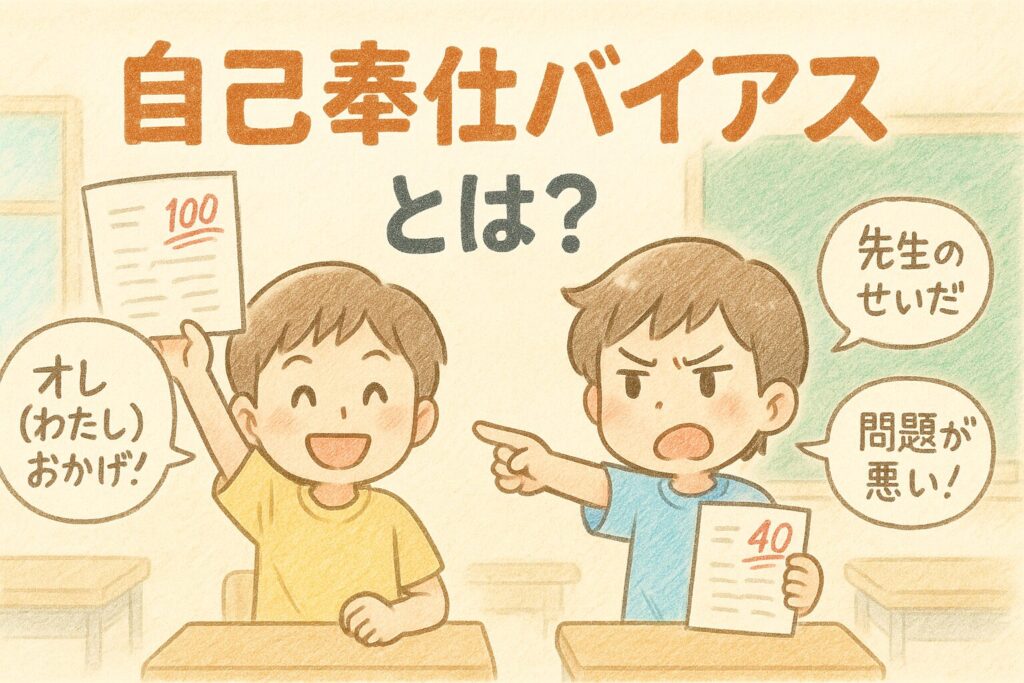 テストや仕事、人間関係で「成功は自分、失敗は人のせい」にしてしまう心のクセ=『自己奉仕バイアス』を、物語と心理学にもとづいてやさしく解説し、失敗から学ぶためのヒントまでまとめました。