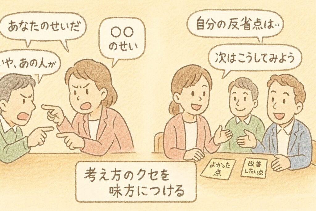 → 「上司の指示が悪い」「みんな練習してなかったし」