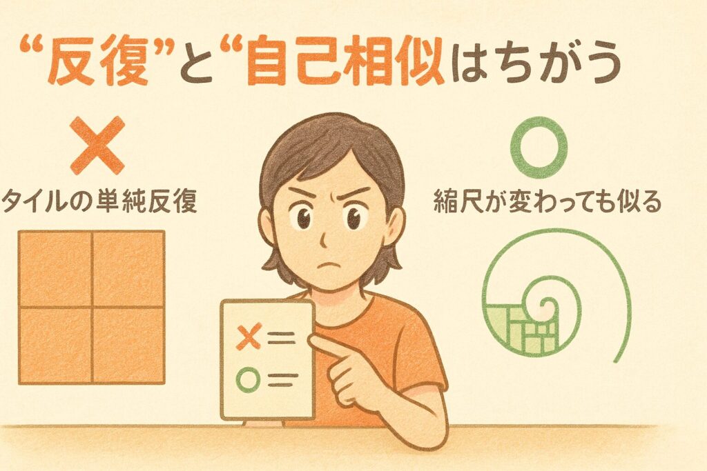 ズームインしてもズームアウトしても“似た感じ”が続く——それが自己相似です。