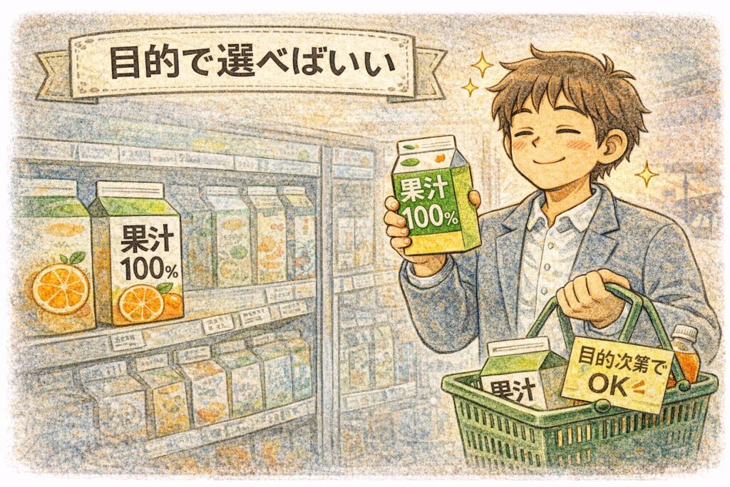 あの日モヤッとした**「果汁10%」**の文字が、今は“ヒント”に見えました。