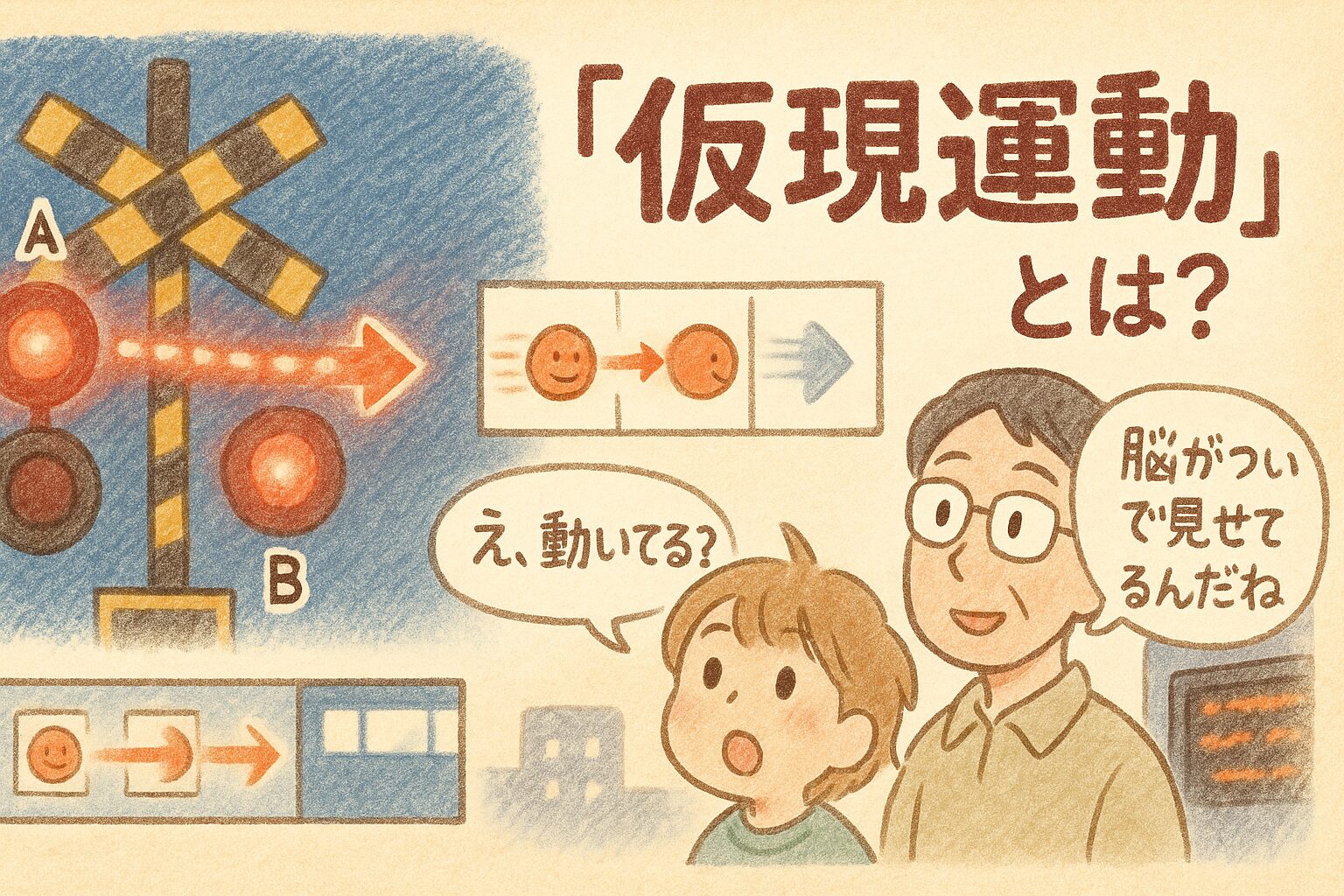踏切・電光掲示板・アニメをつなぐ“見せかけの動き”を、3秒結論から脳のしくみまで段階的に理解