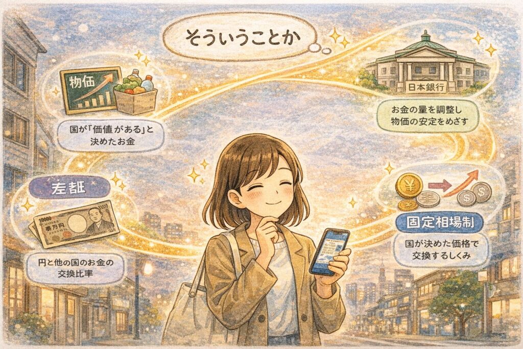 金本位制と管理通貨制度の違いが整理できるので、物価、円安、金利、日銀のニュースが前よりずっと分かりやすくなります。