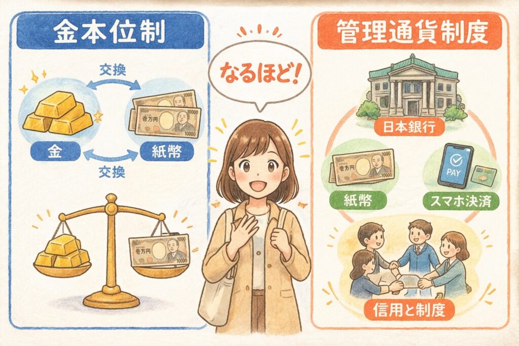 『管理通貨制度』とは? 金本位制との違いをやさしく解説|紙のお金が使える理由がわかる