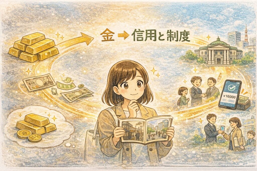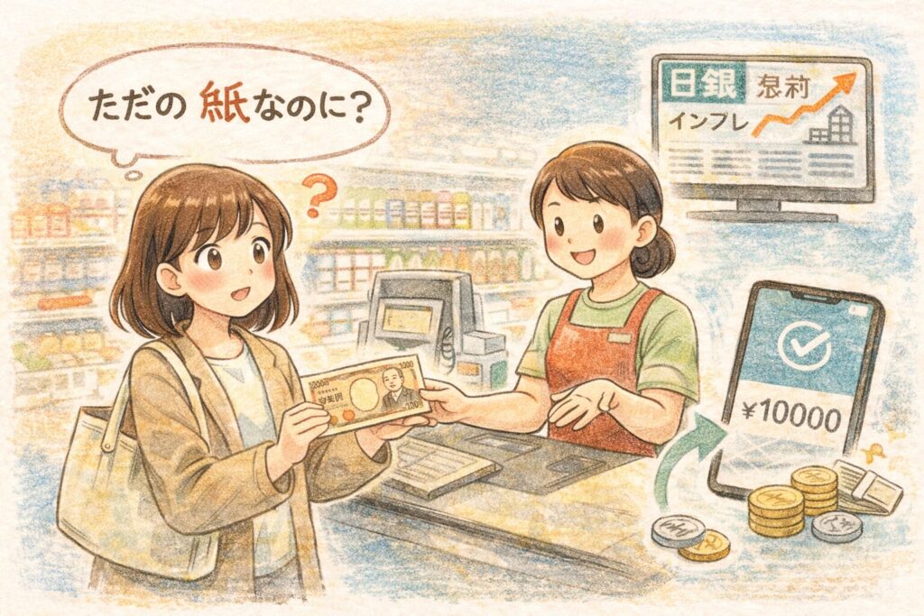 ここを理解すると、「ただの紙なのに不思議」という感覚が、「信用と制度で動くから使えるんだ」という理解に変わっていきます。